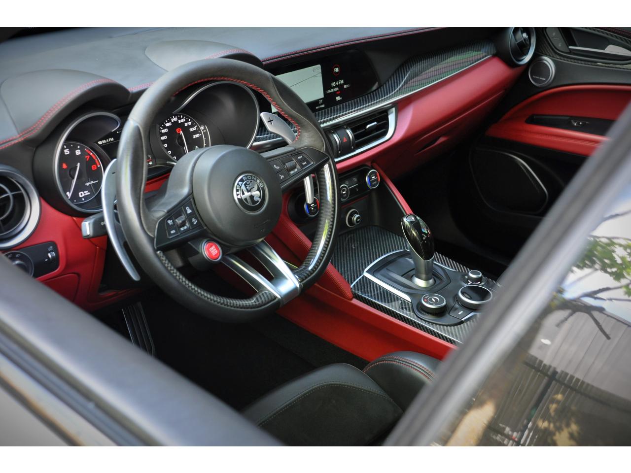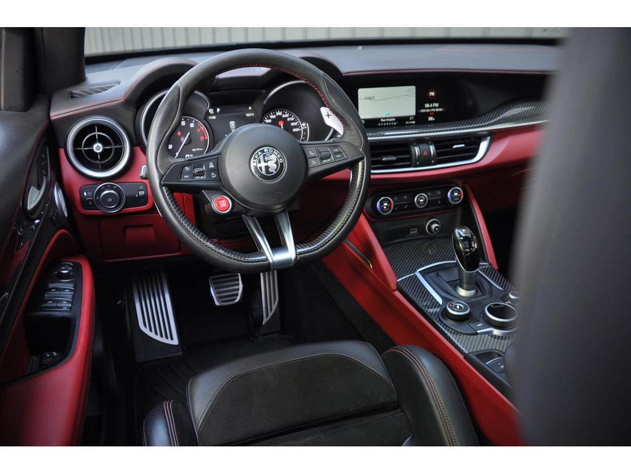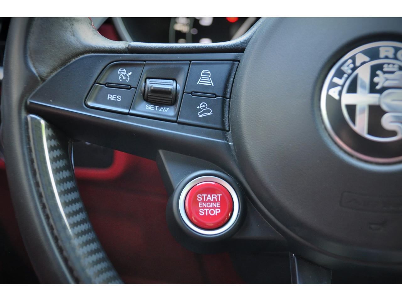 8 haut-parleursAlfa Chassis Domain ControlBOITIER COMMANDE VALVE ECHAPPEMENTAlfa DNA Pro (Mode Race)Avertisseur de dépassement de ligne blanche (LDW)Badge QuadrifoglioBanquette arrière rabattable 40/20/40Bouton démarreur au volantCartographie EuropeClimatisation automatique bi-zone, avec aérateurs à l'arrièreContour des vitres latérales Noir LaquéEssuie-glaces avant automatique avec détecteur de pluie et allumage automatique des feuxEtriers de frein anodisés avec inscription rougeFeux arrière à LEDFrein de parking électroniqueFreinage d'urgence autonome (AEB)Grille avant QuadrifoglioHayon arrière motorisé avec mémorisation de la hauteur d'ouvertureInserts de planche de bord, tunnel central avant et portières en carboneJantes en alliage 20" QuadrifoglioKit “Fix&Go”Pack Confort PlusPack Driver Assistance PlusPack EclairagePalettes de changement des rapports au volant en aluminium brosséPare-chocs arrière sportPédalier en aluminium SportPeinture pastel Rouge AlfaPlanche de bord en cuir avec surpiqûresPrise USB frontaleRadars de stationnement arrièreRégulateur de vitesseRétroviseurs extérieurs rabattables électriquementRotary PadSièges sport en cuir/AlcantaraSortie d'échappement Quadrifoglio (4 sorties)Suspension activeSystème Alfa Connect (Radio, MP3, Aux-in, Bluetooth)Système d'aide à la descenteSystème d'alerte anti-collisions (FWC) avec détection piétonsSystème de freins integré (IBS)Système Navigation 3D 8,8" avec CarPlay/Android Auto, Radio Numérique et instrumentation de bord 7'' TFTSystème Stop & StartTapis de sol QuadrifoglioVolant sport en cuir Quadrifoglio