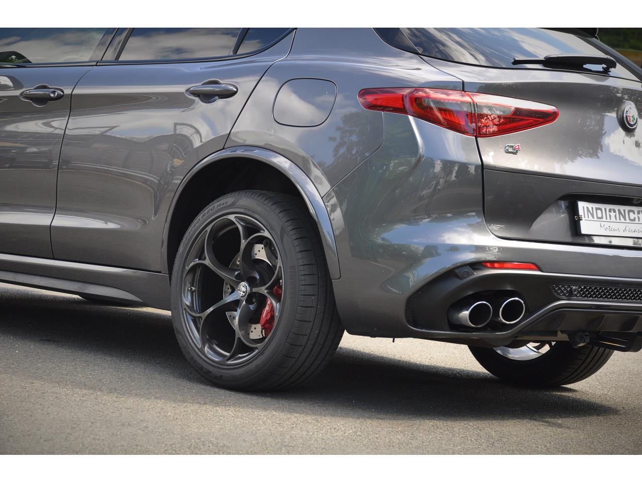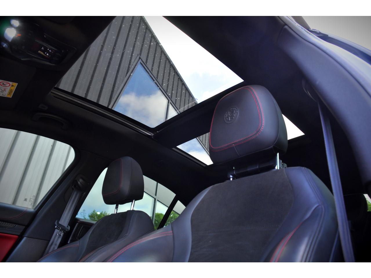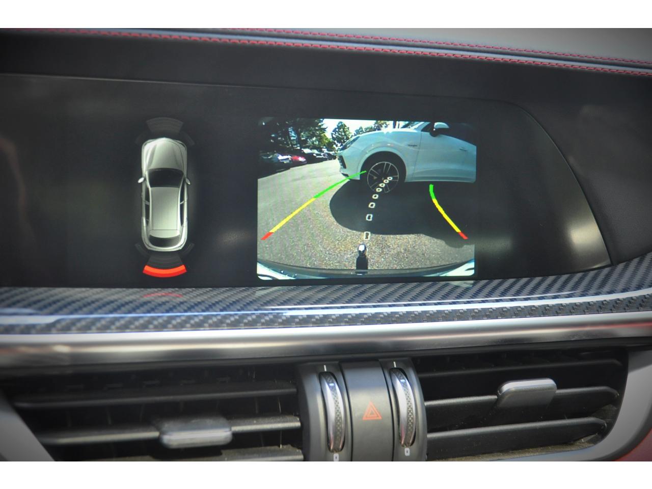 Ambiance intérieure bi-ton Quadrifoglio Etriers de freins rouges Hayon à ouverture électrique mains-libres Jantes en alliage 20" Quadrifoglio Scuro Pack BY Harman Kardon Pack Sièges Electriques Quadrifoglio Prise 220 V dans le coffre Régulateur de vitesse adaptatif (ACC) Toit panoramique ouvrant Vitres arrière surteintées Volant Quadrifoglio avec inserts carbone