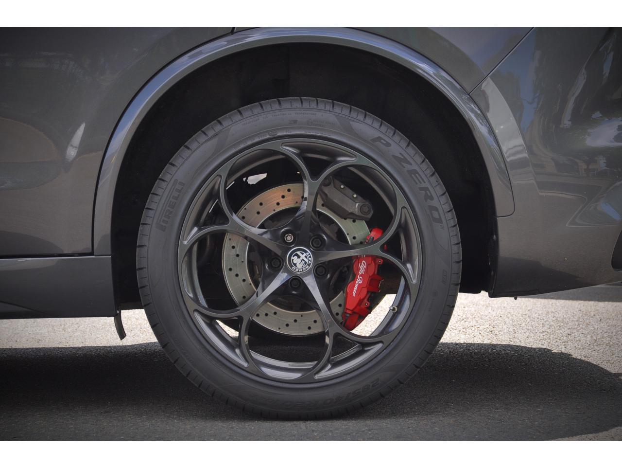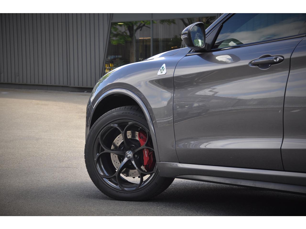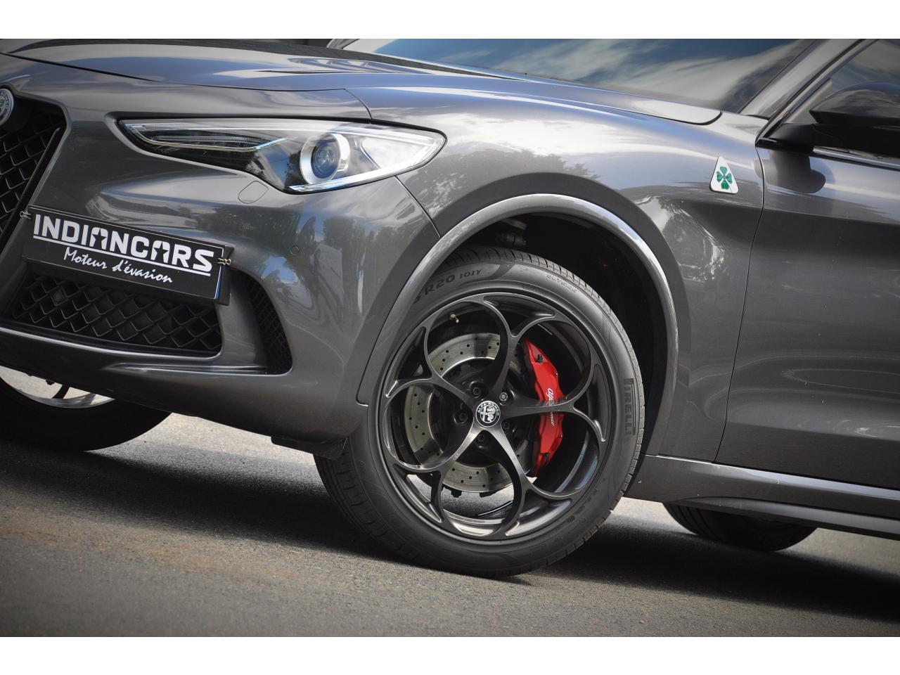 Ambiance intérieure bi-ton Quadrifoglio Etriers de freins rouges Hayon à ouverture électrique mains-libres Jantes en alliage 20" Quadrifoglio Scuro Pack BY Harman Kardon Pack Sièges Electriques Quadrifoglio Prise 220 V dans le coffre Régulateur de vitesse adaptatif (ACC) Toit panoramique ouvrant Vitres arrière surteintées Volant Quadrifoglio avec inserts carbone