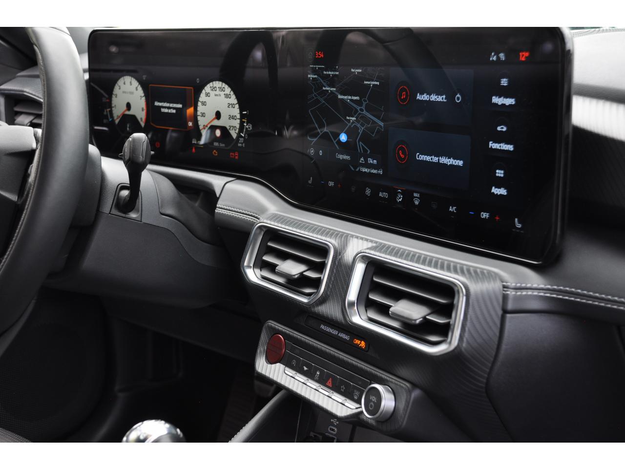 2 porte-gobelets5 modes de conduite sélectionnables : Normal, Sport, Circuit, Drag Strip et Faible adhérenceAide au maintien dans la voieAide au stationnement arrièreAirbags avant frontaux et latérauxAirbags rideaux arrièreAirbags rideaux avantAlarme antivolAlerte de franchissement de ligneAppel urgence (e-Call)Appuies-têtes avant réglables 4 directionsAssistance au freinage d'urgenceBadges chromés "GT" sur le coffre et "5.0" sur les ailesBanquette arrière rabattableCaméra de reculClimatisation automatique bi-zoneConsole de pavillon avec range-lunettesContrôle de pression des pneus ( TPMS )Echappement actif à quadruple sortie chroméeEclairage d'approche dans rétroviseurs extérieursEclairage d’ambianceÉcran incurvé 13,2" avec SYNC 4Essuie-glace à déclenchement automatiqueEtriers de frein noirsFeux de jour à LEDFeux de route intelligentsFrein à main avec frein de drift électroniqueFreinage automatique post-collisionFreins avant Performance BremboGarniture de siège en cuir perforé Noir OnyxGrille de calandre noire GTInstrumentation numérique 12,4"Jantes alliage 19" Gris Carbonized 10x2 branchesKeyfree system - système d'entrée et de démarrage sans cléKit de réparation pneumatiquePack isolation acoustiquePare-brise acoustiquePédalier sport en aluminiumPeinture non métallisée Blanc OxfordPhares Full LED avec masque de phare anti-brouillard et éclairage d'accueilPommeau de levier de vitesses gainé de CuirPort USBPrises d'air sur capot moteur noiresReconnaissance des panneaux de signalisationRégulateur de vitesse adaptatifRégulateur de vitesse intelligent avec lecture des panneaux de signalisationRétroviseur intérieur électrochrome sans cadreRétroviseurs extérieurs couleur carrosserieRétroviseurs extérieurs électriques et dégivrantsRétroviseurs extérieurs rabattables électriquementRevêtement de console centrale en cuir avec surpiqûresSeuils de portes rétroéclairésSiège conducteur à réglage lombaireSiège conducteur à réglages électriques 6 positionsSiège passager à réglage lombaireSiège passager à réglages électriques 4 directionsSièges avant sportSièges avant ventilés et chauffantsSuspension arrière indépendanteSuspension sportSystème audio premium B&O avec 12 haut-parleursSystème de freinage antiblocage (ABS) avec répartiteur électronique de freinage (EBD)Système de prévention de collision avec détection des piétons et de trafic transversalSystème de surveillance de l'angle mort (BSI) avec alerte de véhicule en approche (CTM)Système Stop & StartTapis de sol avantVolant chauffantVolant cuir