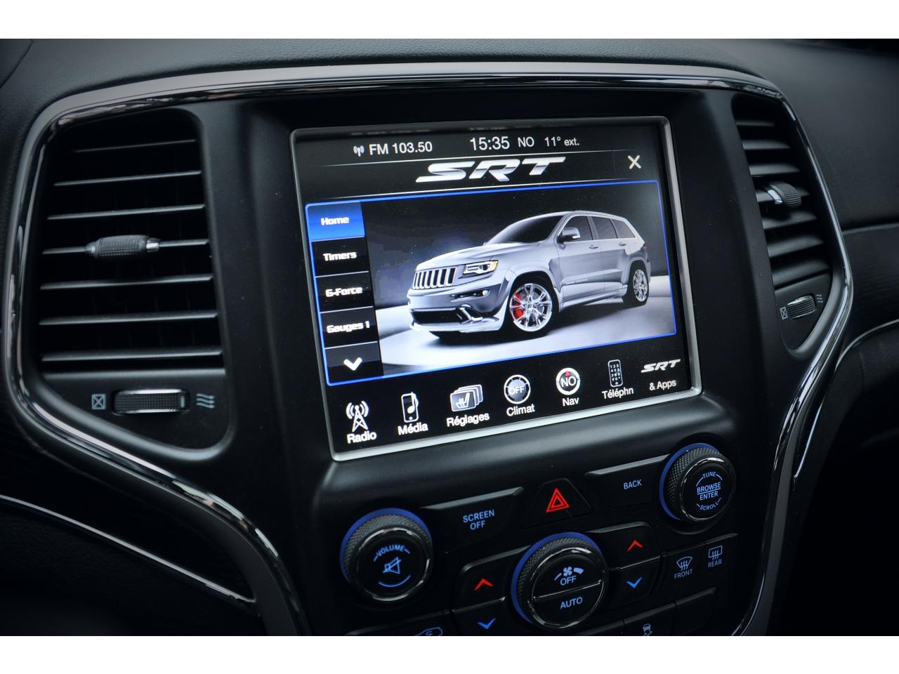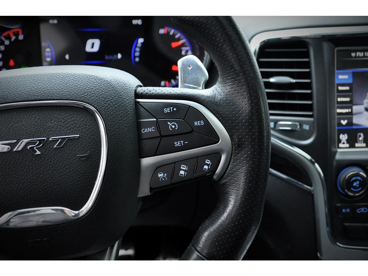 ABS - Système antiblocage des roues avec gestion différenciée en fonction de la nature du solAffichage de la pression des pneusJANTES PEINTESPNEUS NEUFSREVISION COMPLETEAide au démarrage en côte (HSA)Airbag de genouxAirbags frontaux conducteur et passager avant, nouvelle génération à déploiement variableAirbags latéraux additionnels (dans les sièges conducteur et passager)Airbags latéraux avant et arrière de type rideauxAlarme périmétrique de contrôle des ouverturesAlarme silencieuseAllumage automatique des projecteursAppuie-tête actifs à l'avantBanquette arrière fractionnée 60/40 rabattable à plat et inclinable à 12°Cache-bagages amovible à enrouleurCalandre couleur carrosserie avec inserts chromésClimatisation automatique bi-zoneCommandes de l'autoradio au volantDiffuseur arrière sportDouble sortie d'échappement chromée noire SRTEnter-N-Go : système d'ouverture et de démarrage sans cléESP - Système de régulation du comportement dynamiqueEssuie-glace à déclenchement automatiqueFeux antibrouillard arrièreFeux diurnes à LEDFiltre à air pour l'habitacleFonction mémorisation : siège conducteur, rétroviseurs extérieurs et stations de radioFreins à disques ventilés Brembo pour SRT de 380mm à l'avant et freins à disque de 350mm à l'arrièreInsert d'habitacle en véritable fibre de carboneJantes en aluminium forgé 20" design SRT et suspensions sportLunette du hayon ouvrable séparémentOrdinateur de bordPack navigation et toit ouvrantPalettes de changement de rapports au volantPare-soleil coulissants avec miroir de courtoisie illuminéPédalier sport en aluminiumPneumatiques Pirelli P-Zero à roulage à plat (295/45 ZR20)Poignées de portes couleur carrosseriePommeau de levier de vitesse gainé de cuir perforéPorte-gobelets rétroéclairésPrise JackPrise USB 2.0Prises auxiliaires 12 V (console centrale et accoudoir central)Projecteurs antibrouillardProjecteurs bi-xénon (HID) avec lave-phares et réglage automatique de niveauQuadra-Trac SRTRéglage lombaires électrique (sièges conducteur et passager)Régulateur de vitesse adaptatif (ACC)Rétroviseur intérieur photochromatique avec microphone intégréRétroviseurs avec réglage électrique et fonction dégivrageRétroviseurs extérieurs photochromatique rabattables électriquement avec fonction mémorisationRevêtement du coffre réversible moquette/caoutchoucRoue de secours taille réelleSelec-Terrain : système de gestion de la motricitéSelec-Track : Sélecteur de modes de conduiteSiège central arrière équipé d'une ceinture de sécurité 3 pointsSièges arrières chauffantsSièges avant chauffantsSièges avant électriques avec réglages 8 points conducteur et passagerSièges avant ventilésSièges baquets en cuir suédé perforé et cuir avec logo SRTSpoiler arrière couleur carrosserieSuspension adaptative Bilstein pour SRTSuspension arrière autonivelanteSystème anti-démarrage Sentry KeySystème antipatinage 4 roues par action sur les freins (BTCS)Système audio Harmann Kardon SRT High Performance: 19 haut-parleurs avec amplificateur de 760 wattsSystème d'aide au freinage d'urgence (BAS)Système d'avertissement anticollision avant (FCW)Système de commutation automatique feux de route/feux de croisementSystème de contrôle de la stabilité en conditions de remorquage (TSC)Système de fixation pour siège enfant ISOFIXSystème de séchage des freins et répartiteur électronique de freinage (EBD)Système de surveillance des angles mort (BSD) et détection de présence arrière (RCP)Système ParkSense : aide au stationnement avec capteurs avant et arrièreSystème ParkView : Caméra de recul avec affichage sur l'écran multimédiaSystème préventif anti retournement (ERM)Système téléphonie mains-libres Uconnect et fonction reconnaissance vocaleTapis de sol premium avec logo à l'avant et à l'arrièreTémoin d'avertissement de perte de pression des pneusVerrouillage centralisé à télécommandeVerrouillage des portes au dessus de 30 km/hVitres arrières surteintéesVitres électriques, avec commande séquentielle côté conducteurVolant réglable électriquement en hauteur et en profondeurVolant sport SRT