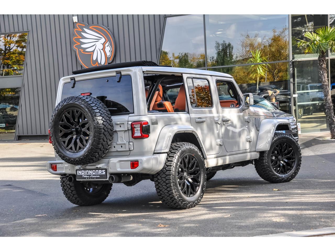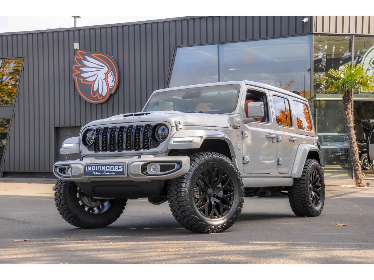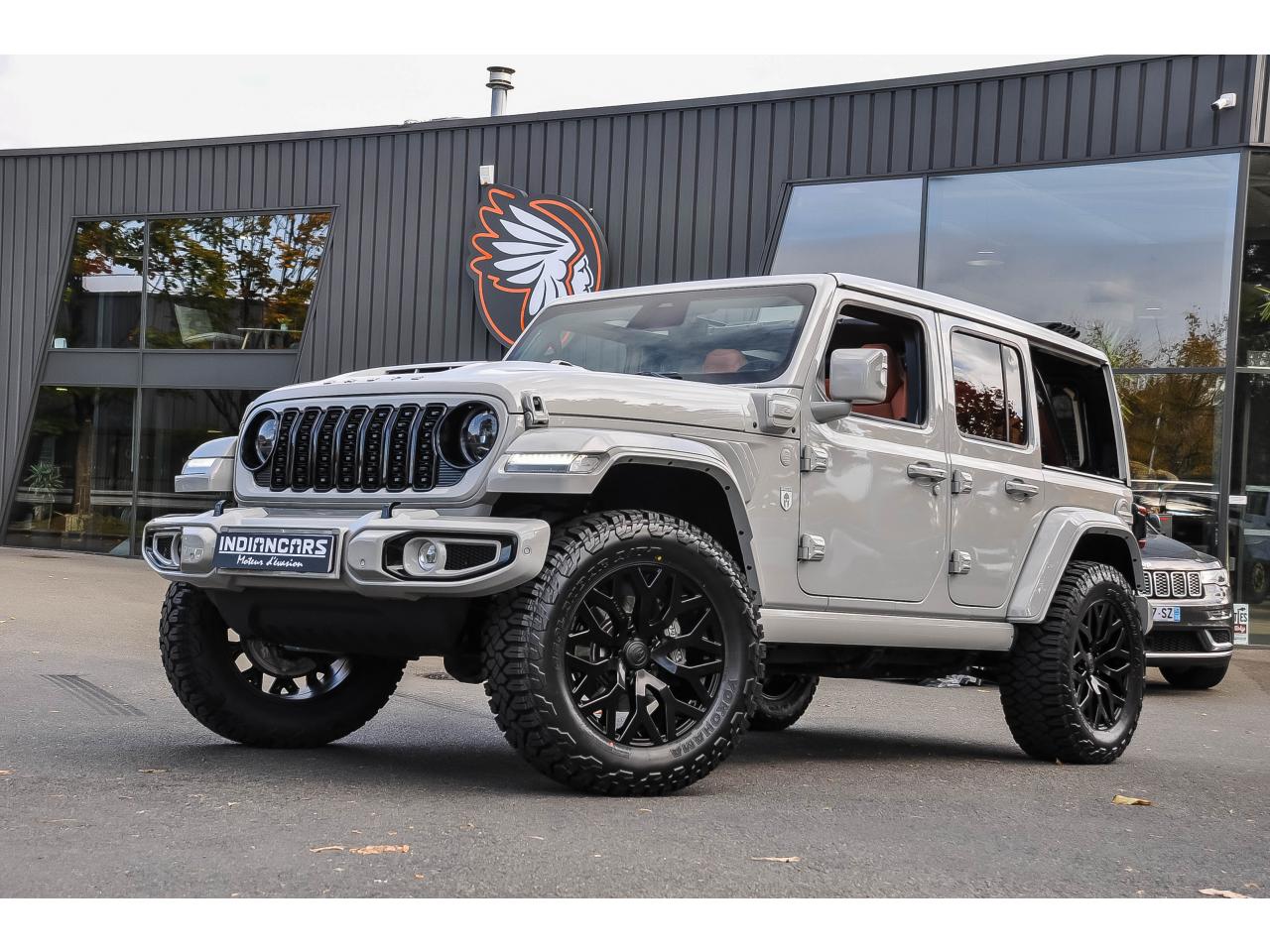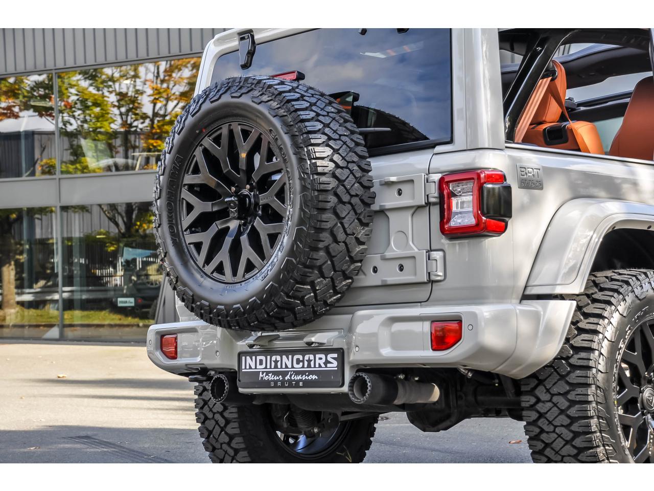 INDIANCARS vous propose ce superbe Jeep Wrangler 2.0i T 4xe 380ch BVA 4x4 Unlimited Sahara Brute Conversion – Modèle 2025.