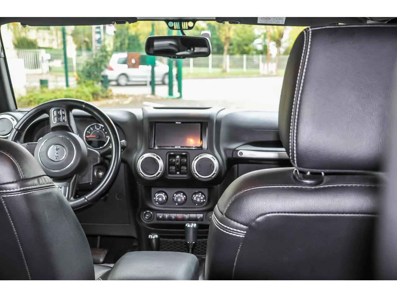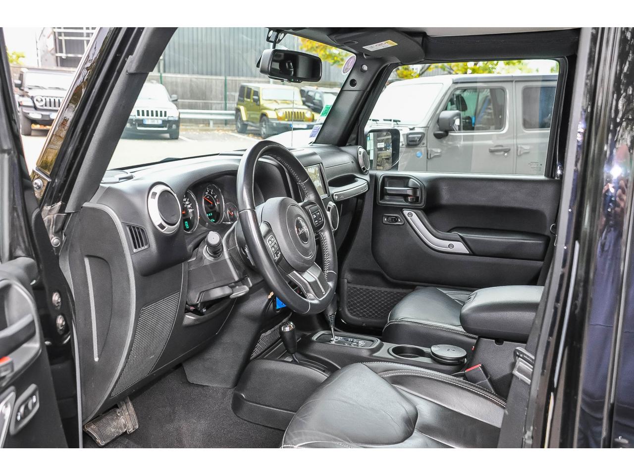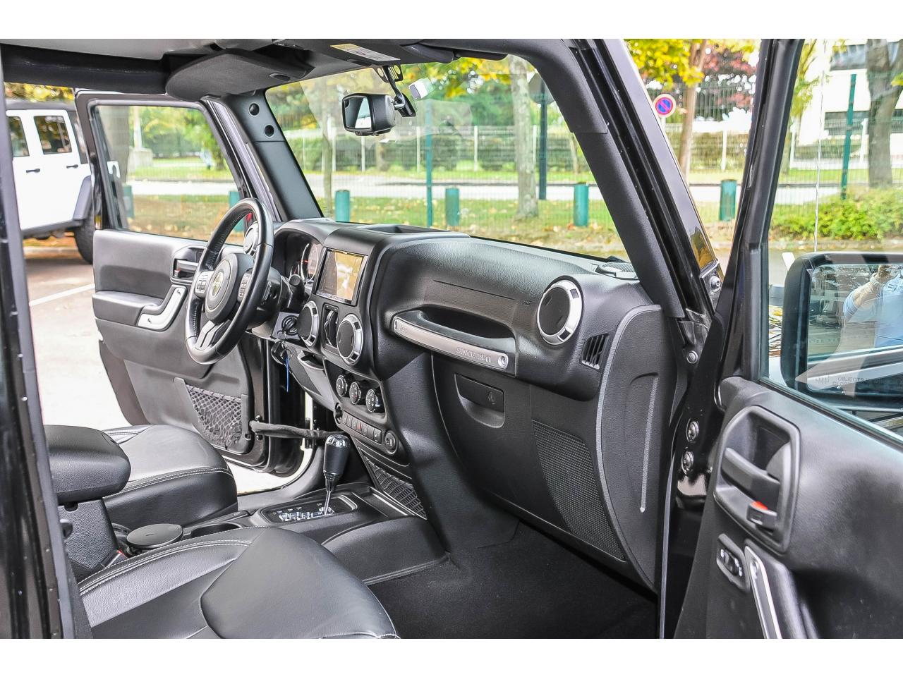 ABS - Système antiblocage des roues avec gestion différenciée en fonction de la nature du solAccoudoir central avant, coulissant avec bac de rangementAirbags frontaux (conducteur et passager) à déploiement variableAirbags latéraux additionnels (dans les sièges conducteur et passager)Allumage automatique des projecteursBanquette arrière inclinable à 12°Banquette arrière rabattable 40/60Calandre Jeep couleur carrosserie avec cerclages argentés des phares et des 7 fentesCasier de rangement dans le coffreCeintures de sécurité avant réglables en hauteur avec prétensionneur et limiteur d'effortClimatisation automatiqueConnexions Apple CarPlay et Android AutoEclairage automatique de l'habitacle au déverrouillage du véhiculeEcrous antivolÉlargisseurs d'ailes couleur carrosserieESP - Système de régulation du comportement dynamiqueFreins à disques de 316 mm à l'arrièreFreins à disques ventilés de 332 mm à l'avantHard-Top modulaire Freedom Top couleur carrosserieHousse roue de secoursJantes alliage 18" SaharaKit fumeurMarche-pieds tubulairesOrdinateur de bordPare-brise rabattablePlaque de protection en acier de la boîte de transfertPlaque de protection en acier du réservoirPont arrière Dana 44Pont avant Dana 30Port USB 2.0Porte-gobelets rétro-éclairésPrise auxiliaire 12v intégrée à la console centraleProjecteurs antibrouillardRégulateur de vitesse (commandes au volant)Répartiteur électronique de freinage REFRétroviseurs avec réglage électrique et fonction dégivrageRoue de secours taille normaleSellerie en cuir avec sièges avant chauffantsSiège conducteur réglable en hauteurSièges avant Easy AccessSystème anti-démarrage Sentry KeySystème audio Premium Pioneer, écran tactile 16,5 cmSystème d 'aide au freinage d'urgenceSystème d'aide au démarrage en côteSystème de contrôle de la descenteSystème de contrôle de la pression des pneusSystème de fixation pour siège enfant ISOFIXSystème de navigation GPS Europe et information traficSystème de téléphonie mains-libres Uconnect avec reconnaissance vocaleSystème préventif antiretournementTapis de sol avant et arrièreTransmission intégrale Command-TracVerrouillage centralisé avec télécommandeVerrouillage des portes au dessus de 30 km/hVitres arrières surteintéesVitres électriquesVolant Jeep à trois branches gainé de cuirVolant multifonctionVolant réglable en hauteur