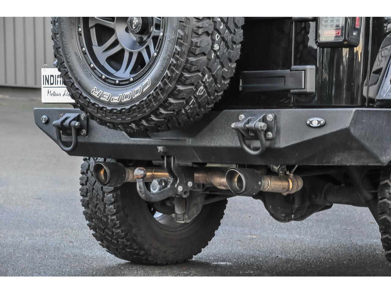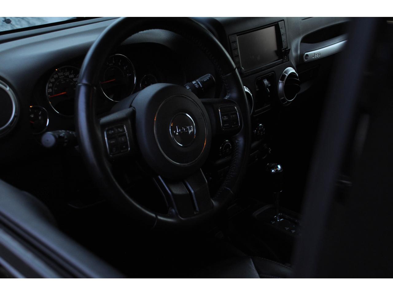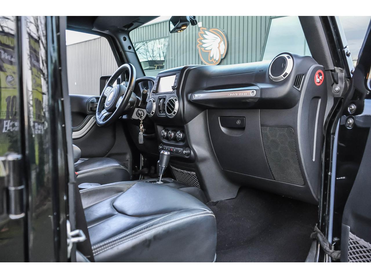 ABS - Système antiblocage des roues avec gestion différenciée en fonction de la nature du solAccoudoir central avant, coulissant avec bac de rangementPare choc avant métal Airbags frontaux (conducteur et passager) à déploiement variableAirbags latéraux additionnels (dans les sièges conducteur et passager)Allumage automatique des projecteursBanquette arrière inclinable à 12°Banquette arrière rabattable 40/60Calandre Jeep couleur carrosserieCalandre Jeep couleur carrosserie avec cerclages argentés des phares et des 7 fentesCasier de rangement dans le coffreCeintures de sécurité avant réglables en hauteur avec prétensionneur et limiteur d'effortClimatisation automatiqueEclairage automatique de l'habitacle au déverrouillage du véhiculeEcrous antivolÉlargisseurs d'ailes couleur carrosserieESP - Système de régulation du comportement dynamiqueFreins à disques de 316 mm à l'arrièreFreins à disques ventilés de 332 mm à l'avantHard-Top modulaire Freedom Top couleur carrosserieHousse roue de secoursKit fumeurMarchepieds latéraux tubulairesOrdinateur de bordPare-brise rabattablePlaque de protection en acier de la boîte de transfertPlaque de protection en acier du réservoirPont arrière Dana 44Pont avant Dana 30Port USB 2.0Porte-gobelets rétro-éclairésPrise auxiliaire 12v intégrée à la console centraleProjecteurs antibrouillardRégulateur de vitesse (commandes au volant)Répartiteur électronique de freinage REFRétroviseurs avec réglage électrique et fonction dégivrageRoue de secours taille réelleSellerie en cuir partiel avec sièges avant chauffantsSiège conducteur réglable en hauteurSièges avant Easy AccessSystème anti-démarrage Sentry KeySystème audio Premium par Alpine à 7 haut-parleurs dont un caisson de bassesSystème d 'aide au freinage d'urgenceSystème d'aide au démarrage en côteSystème de contrôle de la descenteSystème de contrôle de la pression des pneusSystème de fixation pour siège enfant ISOFIXSystème de navigation GPS Europe de l'Ouest à affichage 2D/3D et information traficSystème de téléphonie mains-libres Uconnect avec reconnaissance vocaleSystème multimédia : écran tactile 16,5 cm, lecteur CD/DVD/MP3, autoradio et disque dur de 30 GoSystème préventif antiretournementTapis de sol avant et arrièreTransmission intégrale Command-TracVerrouillage automatique des portes au dessus de 30 km/hVerrouillage centralisé avec télécommandeVitres arrières surteintéesVitres électriquesVolant Jeep à trois branches gainé de cuirVolant multifonctionVolant réglable en hauteur