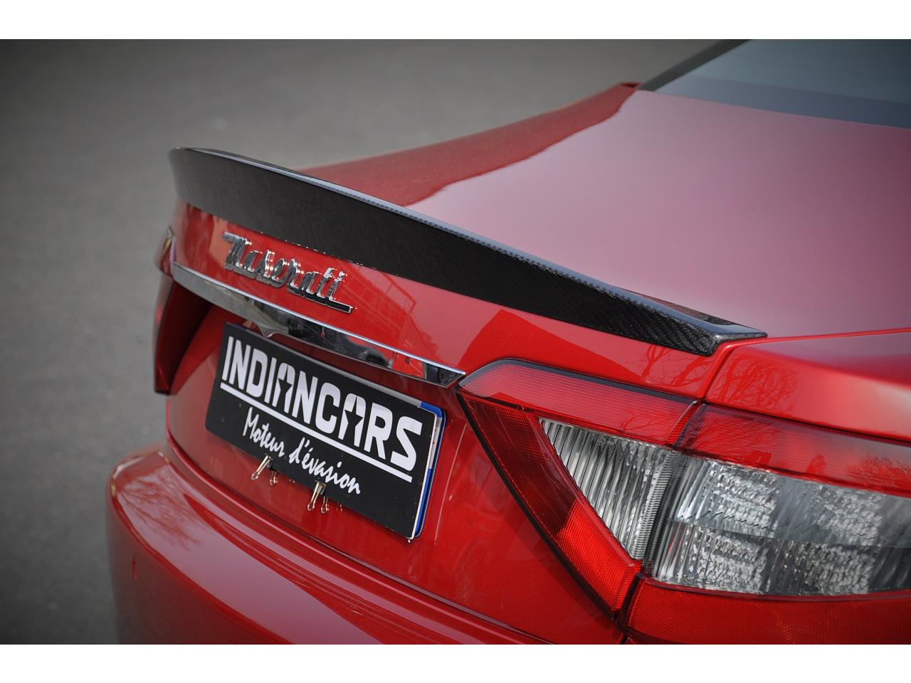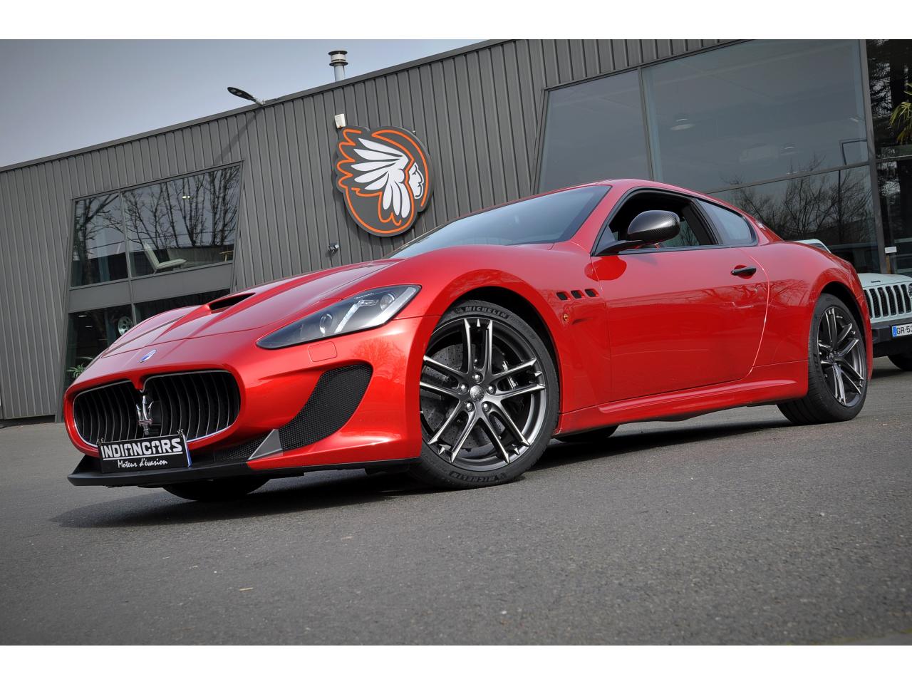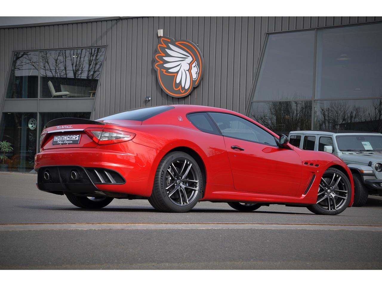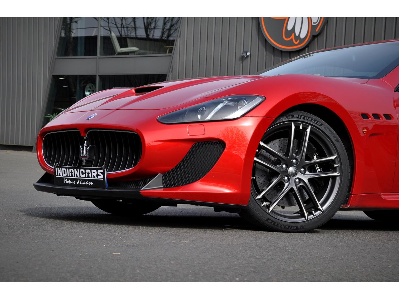 2 sorties d'échappement sport centrales, en acier inoxidable chromé, valves pneumatiques contrôlées par le bouton "Sport/Course"ABS antiblocage des roues avec répartiteur de freinage EBDAccoudoir avant rabattable avec éclairage intérieurAirbags ( avant, latéraux et pavillon)Alarme périmétrique, volumétrique et anti-soulèvementAllumage automatique des projecteursAnti-patinage (ASR)Assistance électrique d' ouverture pour les portes et le coffreBecquet arrièreBoutons pour modes Sport et CourseCalandre avant à barres verticales noiresCalandre noireCapot moteur en fibre de carbone peint, avec deux sorties d'air sur les cotésCapteur de pluieCapteurs de parking ARCeintures de sécurité à prétensionneurClimatisation automatique bi-zones avec 2 aérateurs à l'arrièreCompteur digitalCouverture de coffre léger avec ouverture à télécommandeDirection assistée variable en fonction de la vitesseDisques de frein perforés avec technologie Dual-Cast en céramique composite : 380 mm 6 pistons à l'avant, 360 mm 4 pistons à l'arrièreDoubles porte-gobelets avant et arrièreEntourage des instruments sport avec design MCEtriers de freins de couleur titaneFermeture à télecommandeFeux adaptatifsFeux AR à LED look fuméFinition interieur noir softFrein de stationnement électronique (EPB)Grilles d'aération latéralesHorloge centrale Maserati chromée au centre du tableau de bordImmobiliseur électroniqueJantes alliage léger 20" Trofeo Design forgéesKit anti-crevaison avec compresseur électriqueLogo Trident en relief sur les appui-têtes dans la couleur des surpiquresMulti Media Système avec écran TFT 7"Palettes de changements de vitesse 'Maserati Active Shifting'Pare-brise avec bande anti-reflexionPavillon en tissuPédales Sport en AluminiumPhares avant à LED et DRL, Black LookPhares bi-Xénon et lave-pharesPneus spécifiques hautes performancesRégulateur automatique de vitesseRétroviseur intérieur électrochromeRétroviseurs extérieurs électriques et dégivrantsRevetment central arrière avec logo trident intégréSellerie en cuir Poltrona Frau et alcantara perforéShadow lineSièges arrière avec dessein spécifiqueSpoiler avant integré avec lame aerodynamique avec houie de de refroidissement des freins integréesSuspension à double triangulation et amortissement simple avec un reglage plus ferme et une garde au sol rabaisséeSystème antivolSystème Hi-Fi Maserati incluant 6 haut-parleurs avec amplificateurs 4x25w RMSSystème MSP de contrôle de motricité et de stabilitéTrident rougeVolant à réglage manuel en hauteur et en profondeurVolant en cuir noir et alcantara de couleurVolant multifonction à 3 branches