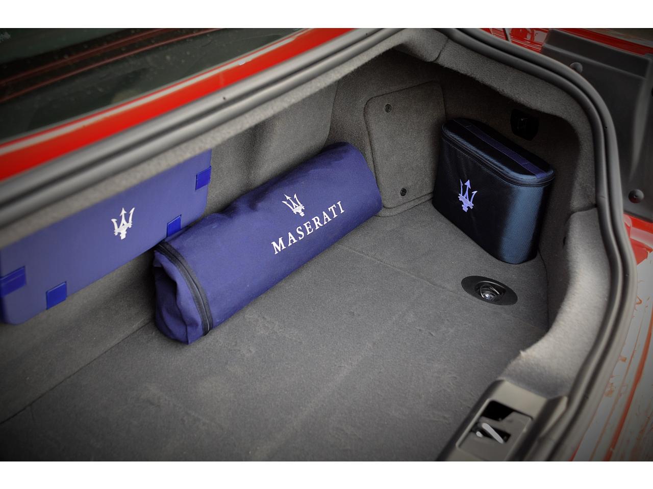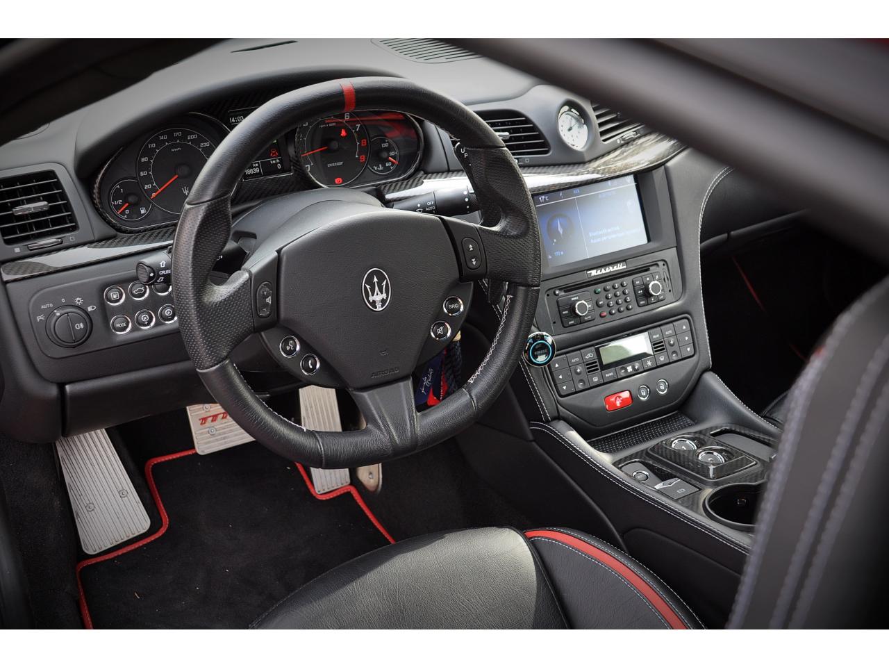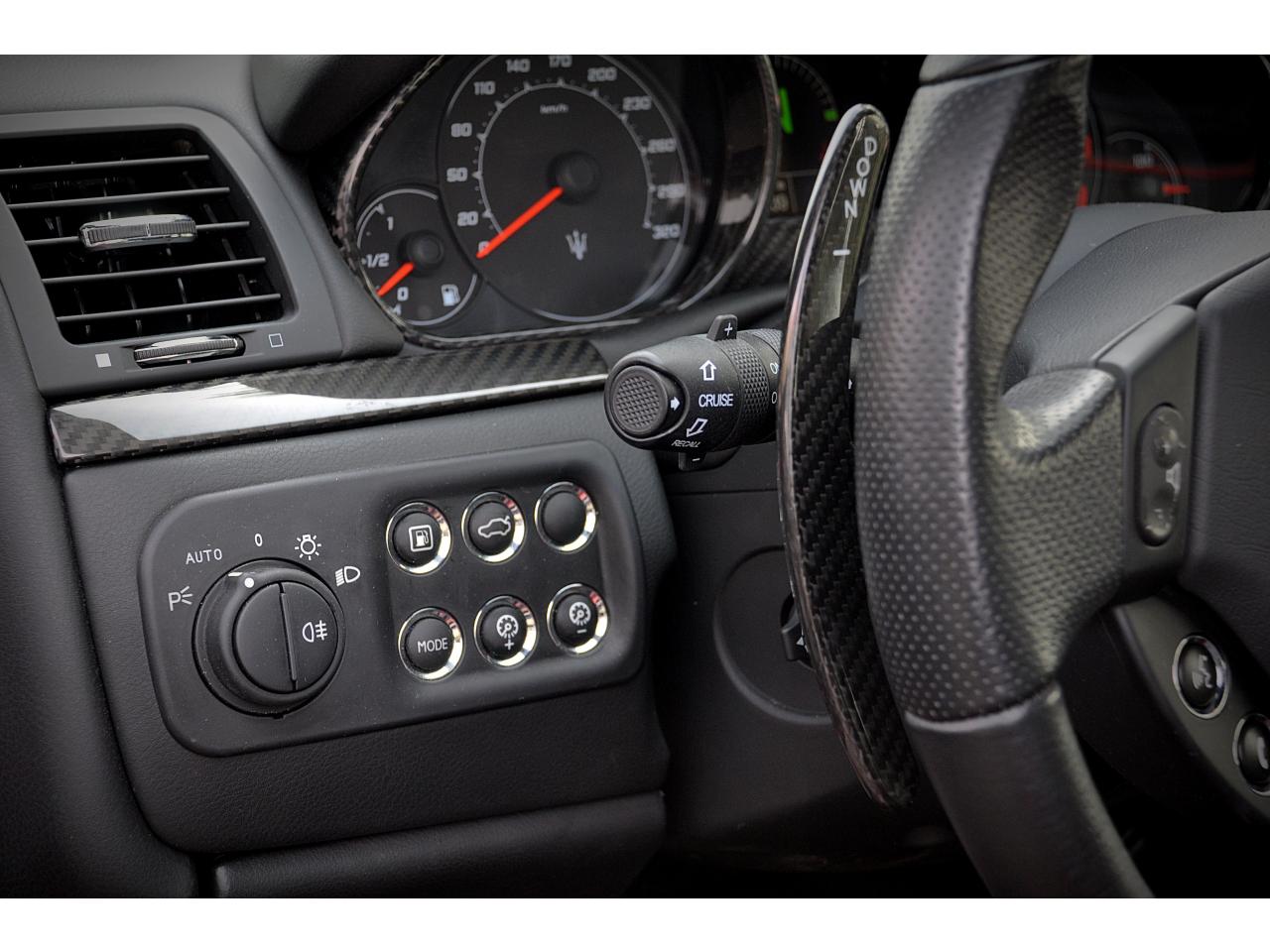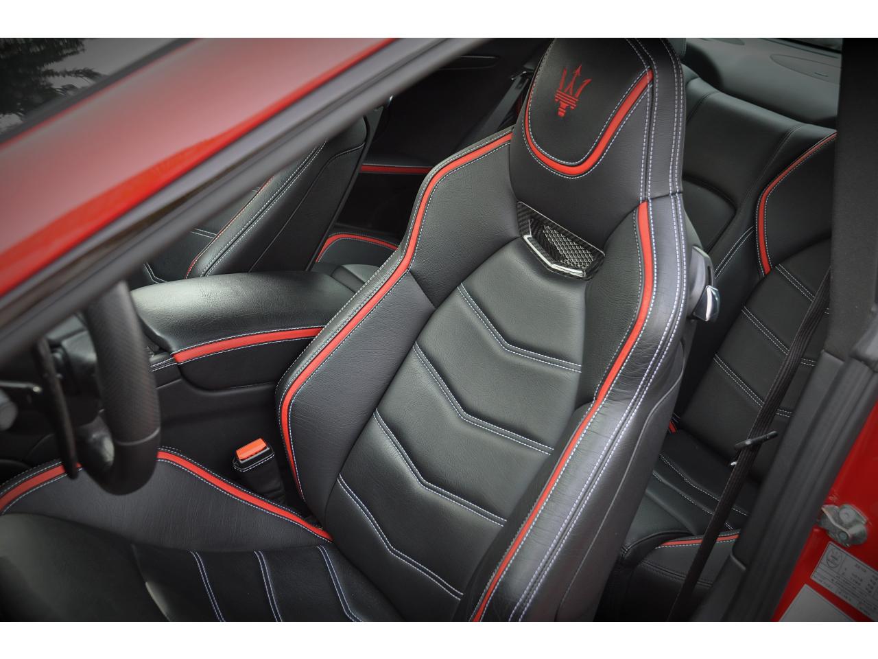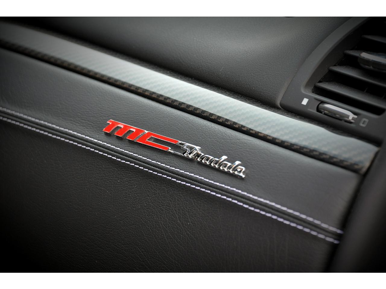 2 sorties d'échappement sport centrales, en acier inoxidable chromé, valves pneumatiques contrôlées par le bouton "Sport/Course"ABS antiblocage des roues avec répartiteur de freinage EBDAccoudoir avant rabattable avec éclairage intérieurAirbags ( avant, latéraux et pavillon)Alarme périmétrique, volumétrique et anti-soulèvementAllumage automatique des projecteursAnti-patinage (ASR)Assistance électrique d' ouverture pour les portes et le coffreBecquet arrièreBoutons pour modes Sport et CourseCalandre avant à barres verticales noiresCalandre noireCapot moteur en fibre de carbone peint, avec deux sorties d'air sur les cotésCapteur de pluieCapteurs de parking ARCeintures de sécurité à prétensionneurClimatisation automatique bi-zones avec 2 aérateurs à l'arrièreCompteur digitalCouverture de coffre léger avec ouverture à télécommandeDirection assistée variable en fonction de la vitesseDisques de frein perforés avec technologie Dual-Cast en céramique composite : 380 mm 6 pistons à l'avant, 360 mm 4 pistons à l'arrièreDoubles porte-gobelets avant et arrièreEntourage des instruments sport avec design MCEtriers de freins de couleur titaneFermeture à télecommandeFeux adaptatifsFeux AR à LED look fuméFinition interieur noir softFrein de stationnement électronique (EPB)Grilles d'aération latéralesHorloge centrale Maserati chromée au centre du tableau de bordImmobiliseur électroniqueJantes alliage léger 20" Trofeo Design forgéesKit anti-crevaison avec compresseur électriqueLogo Trident en relief sur les appui-têtes dans la couleur des surpiquresMulti Media Système avec écran TFT 7"Palettes de changements de vitesse 'Maserati Active Shifting'Pare-brise avec bande anti-reflexionPavillon en tissuPédales Sport en AluminiumPhares avant à LED et DRL, Black LookPhares bi-Xénon et lave-pharesPneus spécifiques hautes performancesRégulateur automatique de vitesseRétroviseur intérieur électrochromeRétroviseurs extérieurs électriques et dégivrantsRevetment central arrière avec logo trident intégréSellerie en cuir Poltrona Frau et alcantara perforéShadow lineSièges arrière avec dessein spécifiqueSpoiler avant integré avec lame aerodynamique avec houie de de refroidissement des freins integréesSuspension à double triangulation et amortissement simple avec un reglage plus ferme et une garde au sol rabaisséeSystème antivolSystème Hi-Fi Maserati incluant 6 haut-parleurs avec amplificateurs 4x25w RMSSystème MSP de contrôle de motricité et de stabilitéTrident rougeVolant à réglage manuel en hauteur et en profondeurVolant en cuir noir et alcantara de couleurVolant multifonction à 3 branches