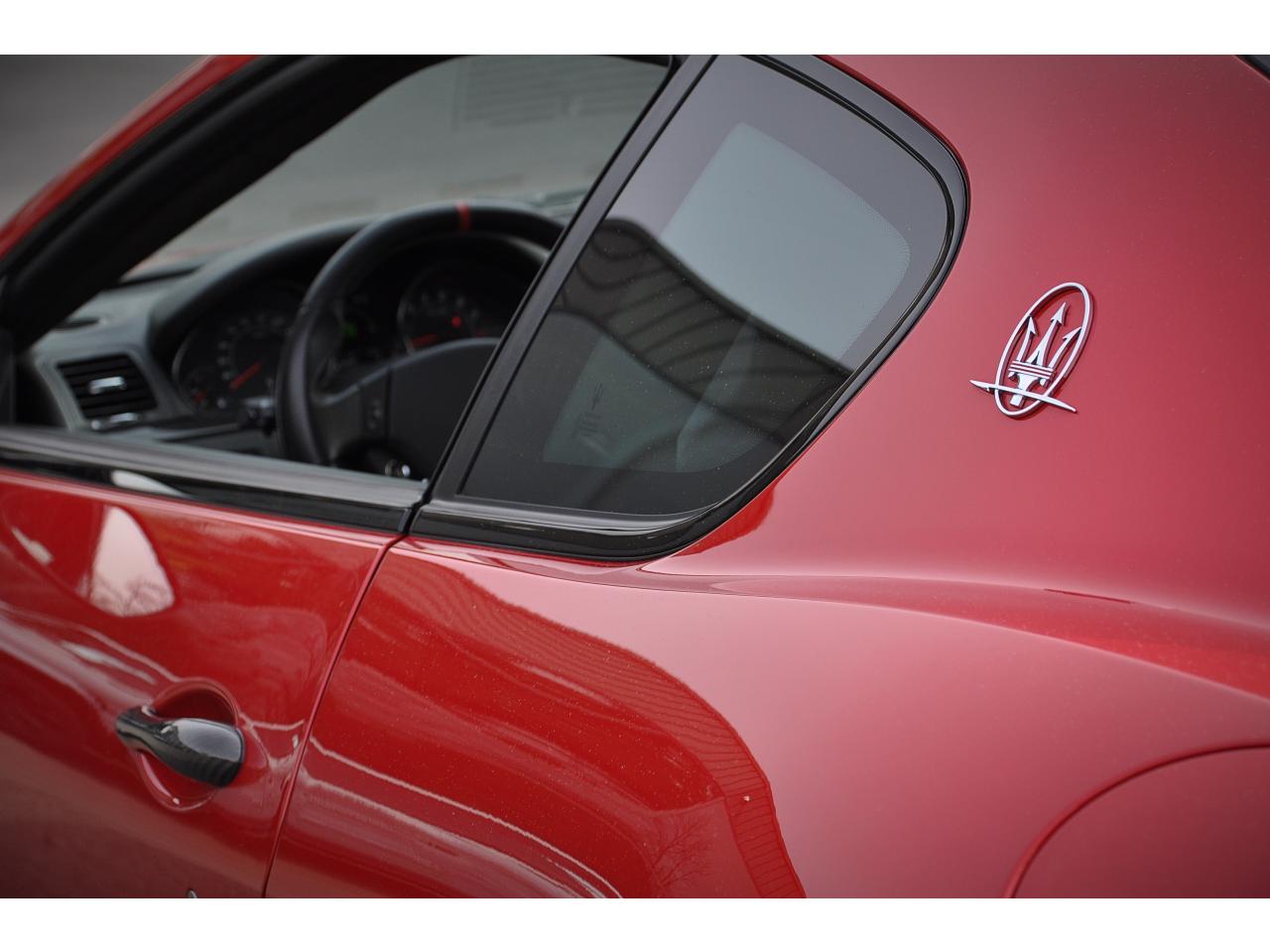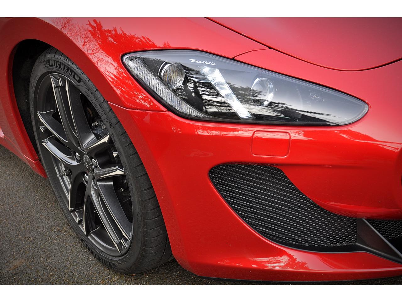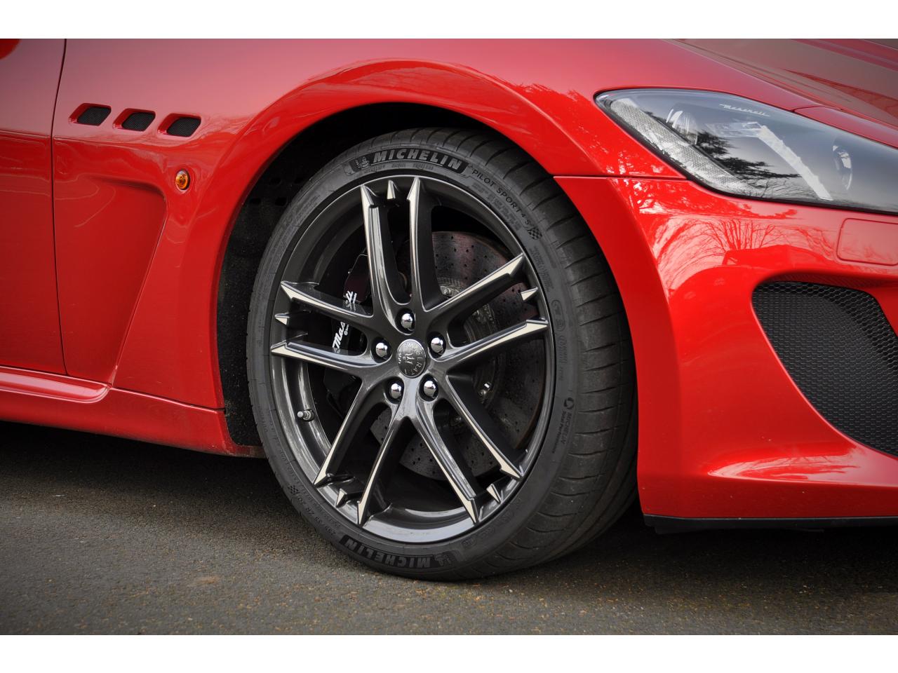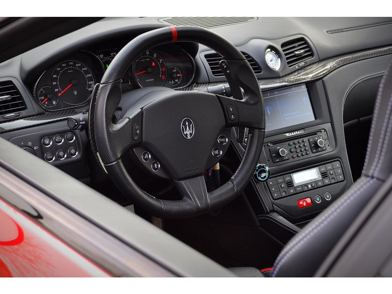 2 sorties d'échappement sport centrales, en acier inoxidable chromé, valves pneumatiques contrôlées par le bouton "Sport/Course"ABS antiblocage des roues avec répartiteur de freinage EBDAccoudoir avant rabattable avec éclairage intérieurAirbags ( avant, latéraux et pavillon)Alarme périmétrique, volumétrique et anti-soulèvementAllumage automatique des projecteursAnti-patinage (ASR)Assistance électrique d' ouverture pour les portes et le coffreBecquet arrièreBoutons pour modes Sport et CourseCalandre avant à barres verticales noiresCalandre noireCapot moteur en fibre de carbone peint, avec deux sorties d'air sur les cotésCapteur de pluieCapteurs de parking ARCeintures de sécurité à prétensionneurClimatisation automatique bi-zones avec 2 aérateurs à l'arrièreCompteur digitalCouverture de coffre léger avec ouverture à télécommandeDirection assistée variable en fonction de la vitesseDisques de frein perforés avec technologie Dual-Cast en céramique composite : 380 mm 6 pistons à l'avant, 360 mm 4 pistons à l'arrièreDoubles porte-gobelets avant et arrièreEntourage des instruments sport avec design MCEtriers de freins de couleur titaneFermeture à télecommandeFeux adaptatifsFeux AR à LED look fuméFinition interieur noir softFrein de stationnement électronique (EPB)Grilles d'aération latéralesHorloge centrale Maserati chromée au centre du tableau de bordImmobiliseur électroniqueJantes alliage léger 20" Trofeo Design forgéesKit anti-crevaison avec compresseur électriqueLogo Trident en relief sur les appui-têtes dans la couleur des surpiquresMulti Media Système avec écran TFT 7"Palettes de changements de vitesse 'Maserati Active Shifting'Pare-brise avec bande anti-reflexionPavillon en tissuPédales Sport en AluminiumPhares avant à LED et DRL, Black LookPhares bi-Xénon et lave-pharesPneus spécifiques hautes performancesRégulateur automatique de vitesseRétroviseur intérieur électrochromeRétroviseurs extérieurs électriques et dégivrantsRevetment central arrière avec logo trident intégréSellerie en cuir Poltrona Frau et alcantara perforéShadow lineSièges arrière avec dessein spécifiqueSpoiler avant integré avec lame aerodynamique avec houie de de refroidissement des freins integréesSuspension à double triangulation et amortissement simple avec un reglage plus ferme et une garde au sol rabaisséeSystème antivolSystème Hi-Fi Maserati incluant 6 haut-parleurs avec amplificateurs 4x25w RMSSystème MSP de contrôle de motricité et de stabilitéTrident rougeVolant à réglage manuel en hauteur et en profondeurVolant en cuir noir et alcantara de couleurVolant multifonction à 3 branches